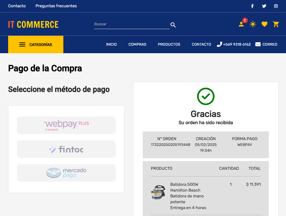 - Proceso de compra sencillo y seguro: Pagos protegidos con opciones locales como WebPay, Mercado Libre, transferencia bancaria y otras integraciones.