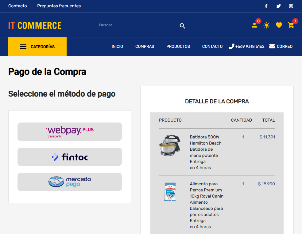 - Adaptada a tu mercado: Ofrecemos integración con los métodos de pago preferidos por tus clientes, incluyendo opciones tales como WebPay, Mercado Libre y transferencias bancarias. Esto garantiza una experiencia de compra fluida y familiar para el mercado chileno.